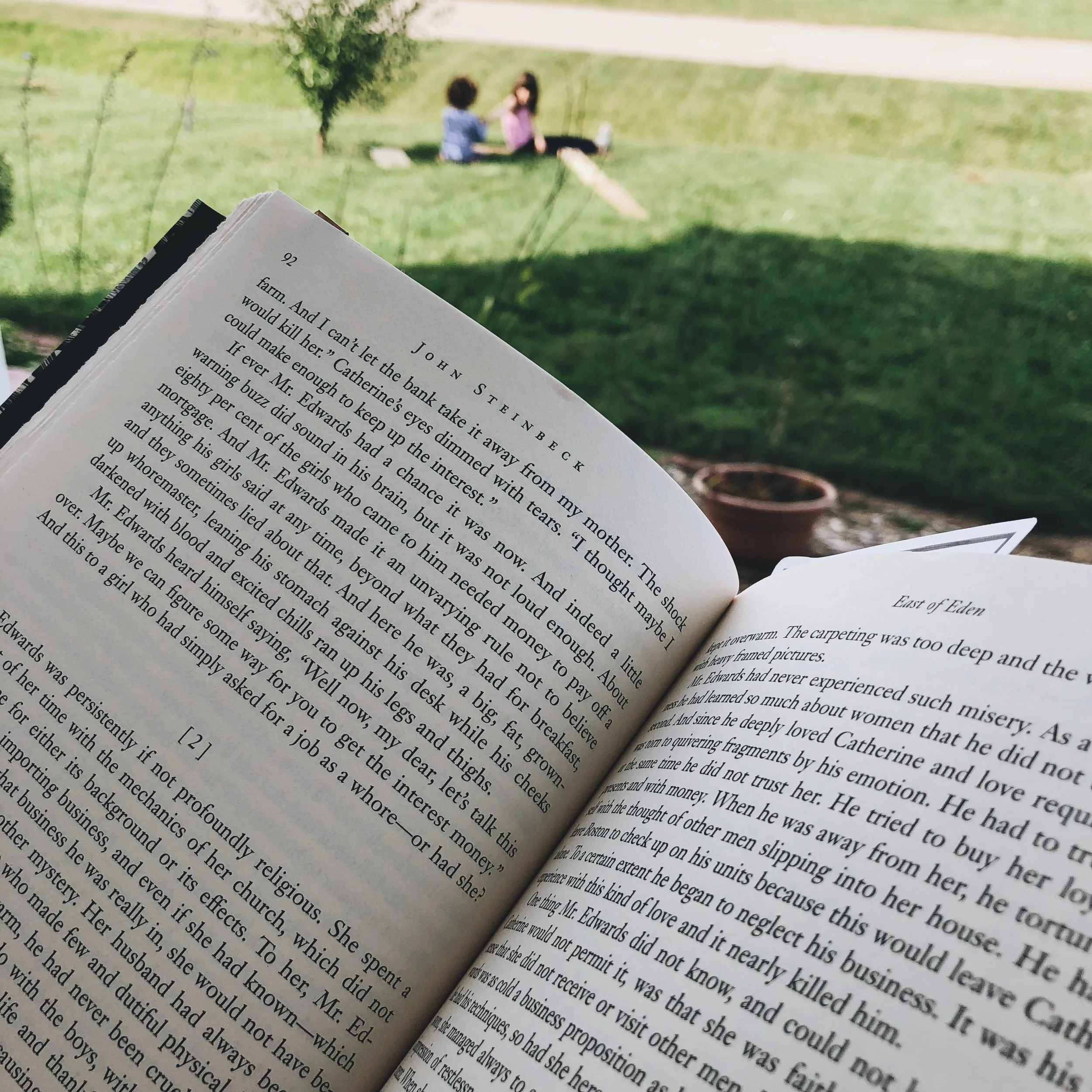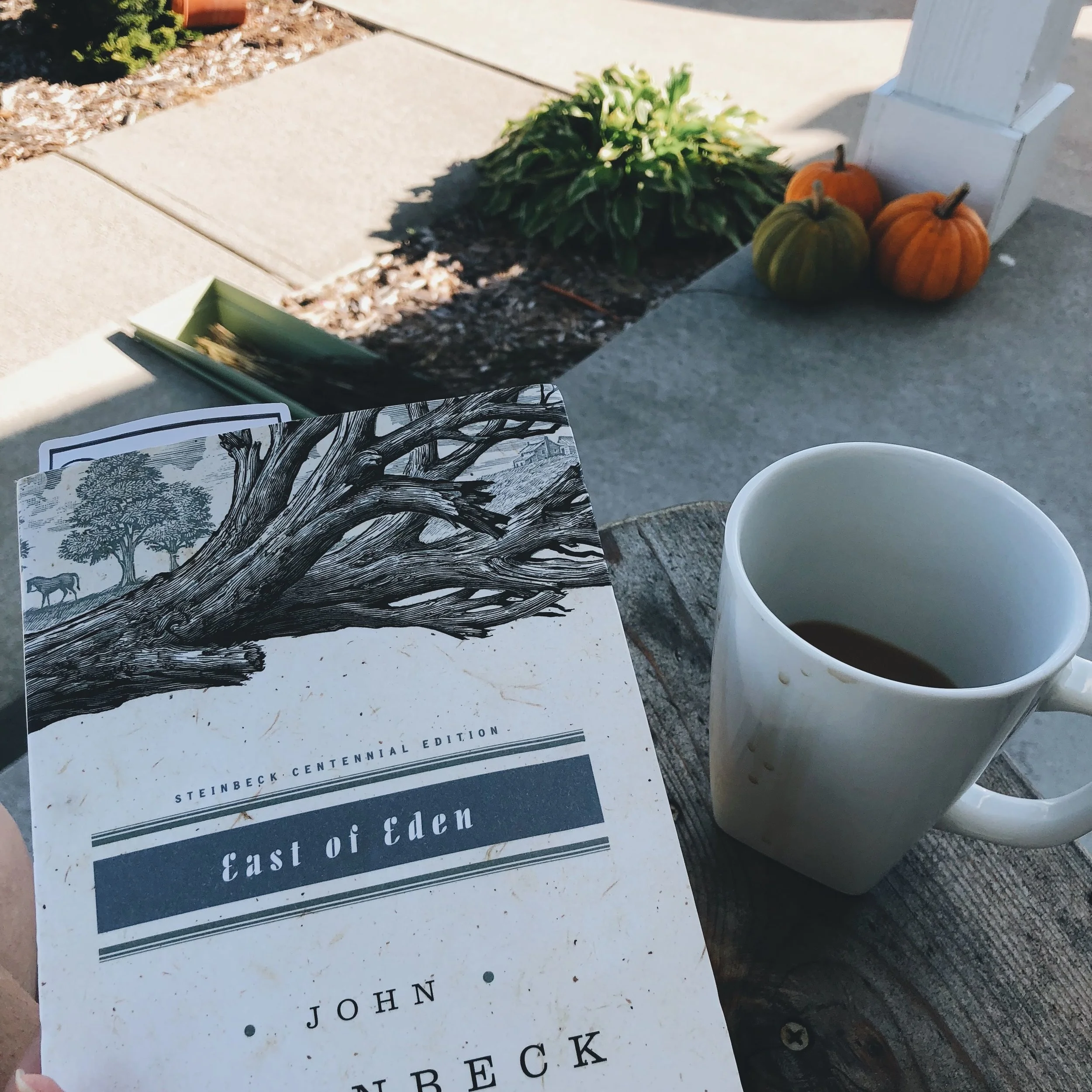 We finished lessons so I sent them out to play in the yard. They were sitting on planks of wood under the tree, pretending they were on a boat in the ocean. Time for me to get some more of my own reading in! Continuing on with East of Eden. They played for well over an hour!